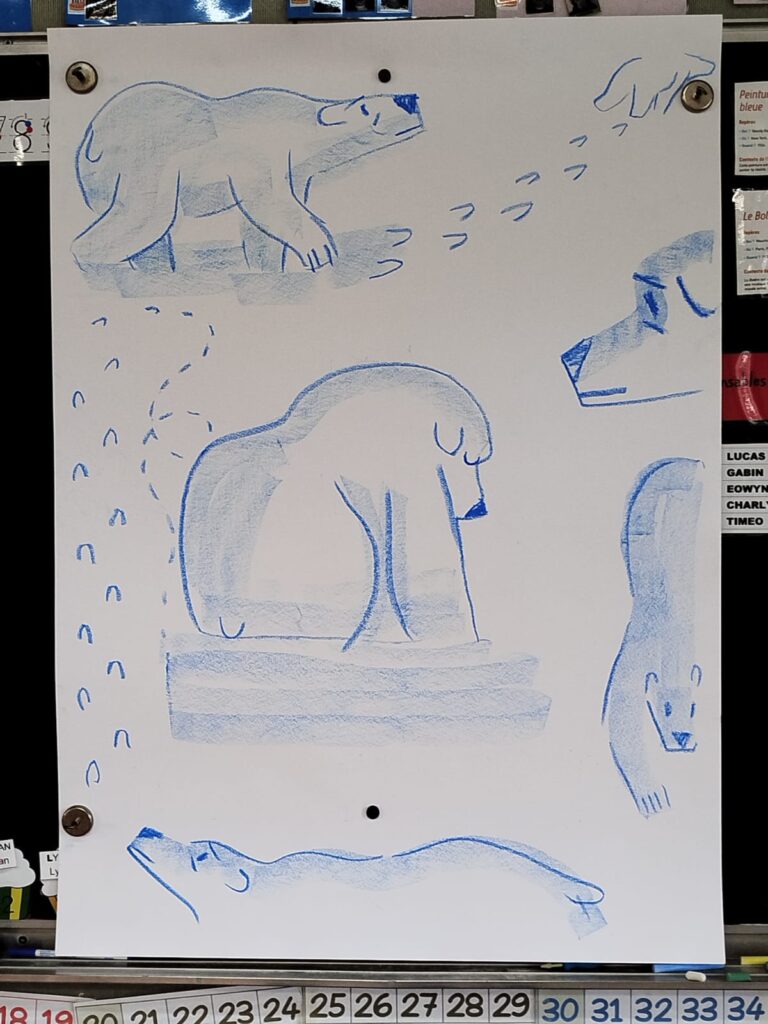 Des ateliers ont également été menés par Pierre Moussey en milieu scolaire, notamment à l’école Léon Goraguer (Gourlizon), à l’école Sainte Bernadette (Quimper) et à l’école Lucie Aubrac (Plomelin).