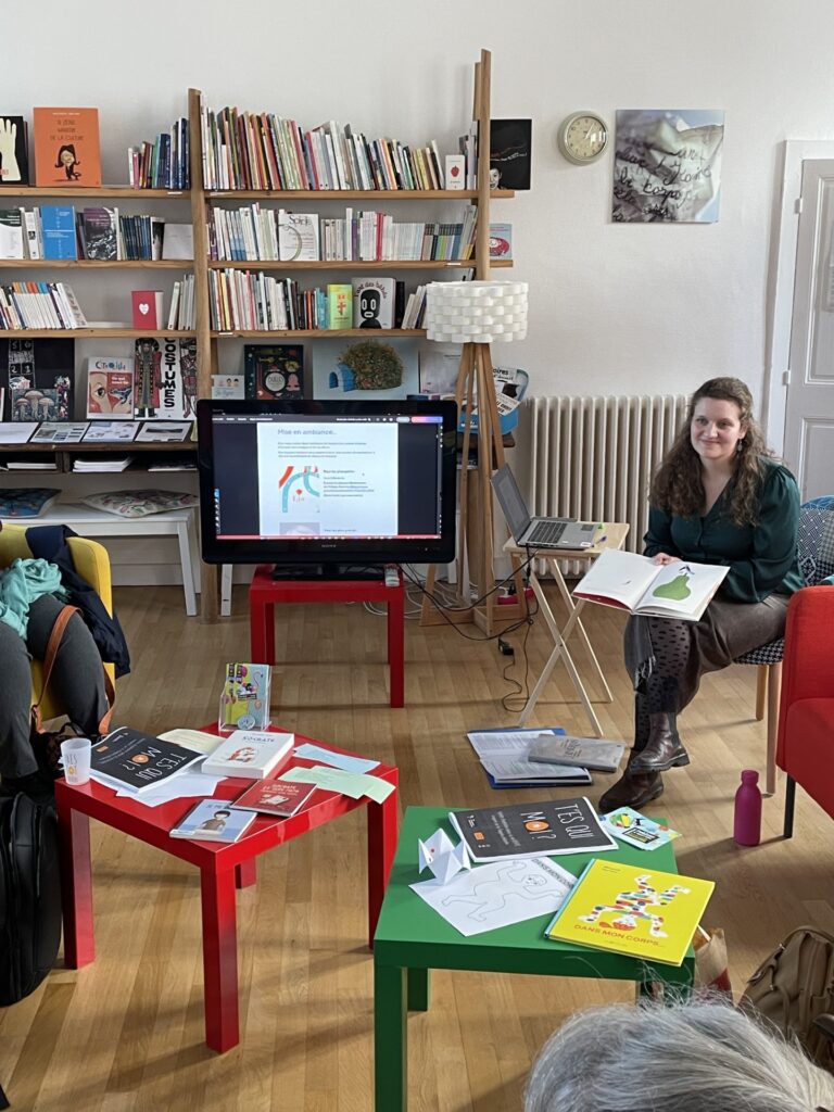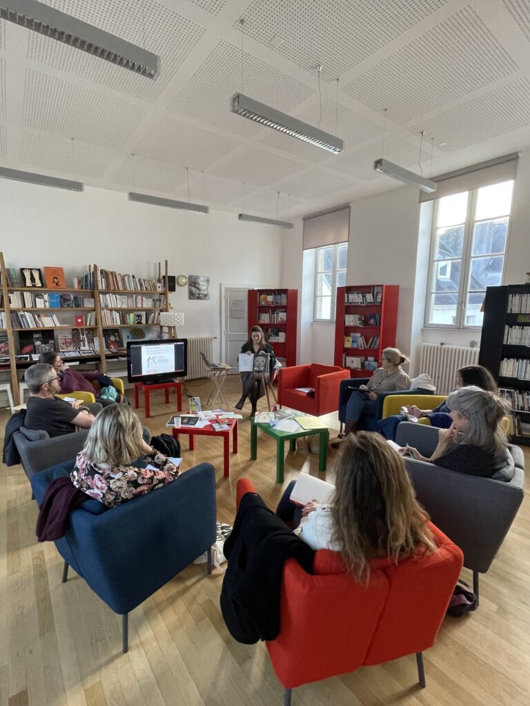Ce mercredi 12 novembre, 8 enseignantes se sont réunies à l’Écri-Tôt pour découvrir la pochette «T’es qui moi ? », outils de médiation qu’elles expérimenteront avec leurs élèves de primaire et collège en parallèle de la découverte d’un spectacle de la saison.