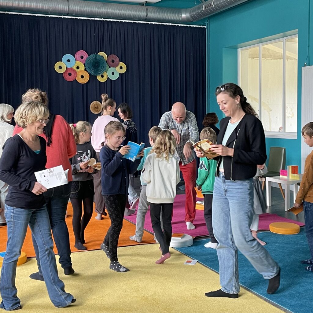 En alternant les jeux de langages et de lectures, les 16 enfants et parents ont pu découvrir tous ensemble quelques écritures théâtrales pour la jeunesse,