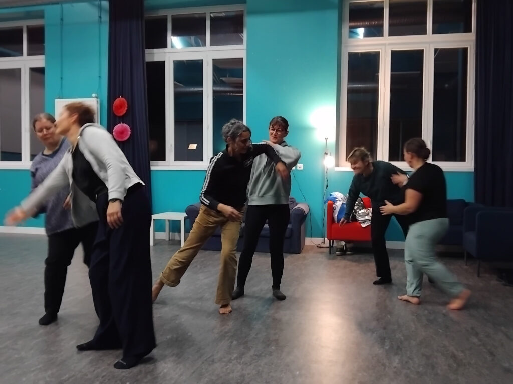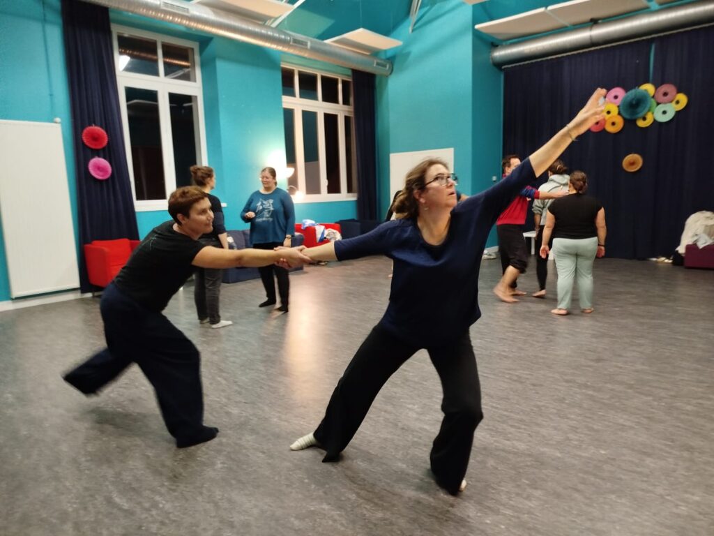 Le mardi 9 décembre 2025, 6 enseignantes ont participé à un atelier de danse plein de rebondissements aux Ateliers du Jardin à Quimper. L’atelier a été mené par le chorégraphe Thomas Guerry de la compagnie Arcosm et Nadia Hacini de la Brigade d’Intervention Dansée d’Escabelle (BIDe) à l’invitation de Très Tôt Théâtre.