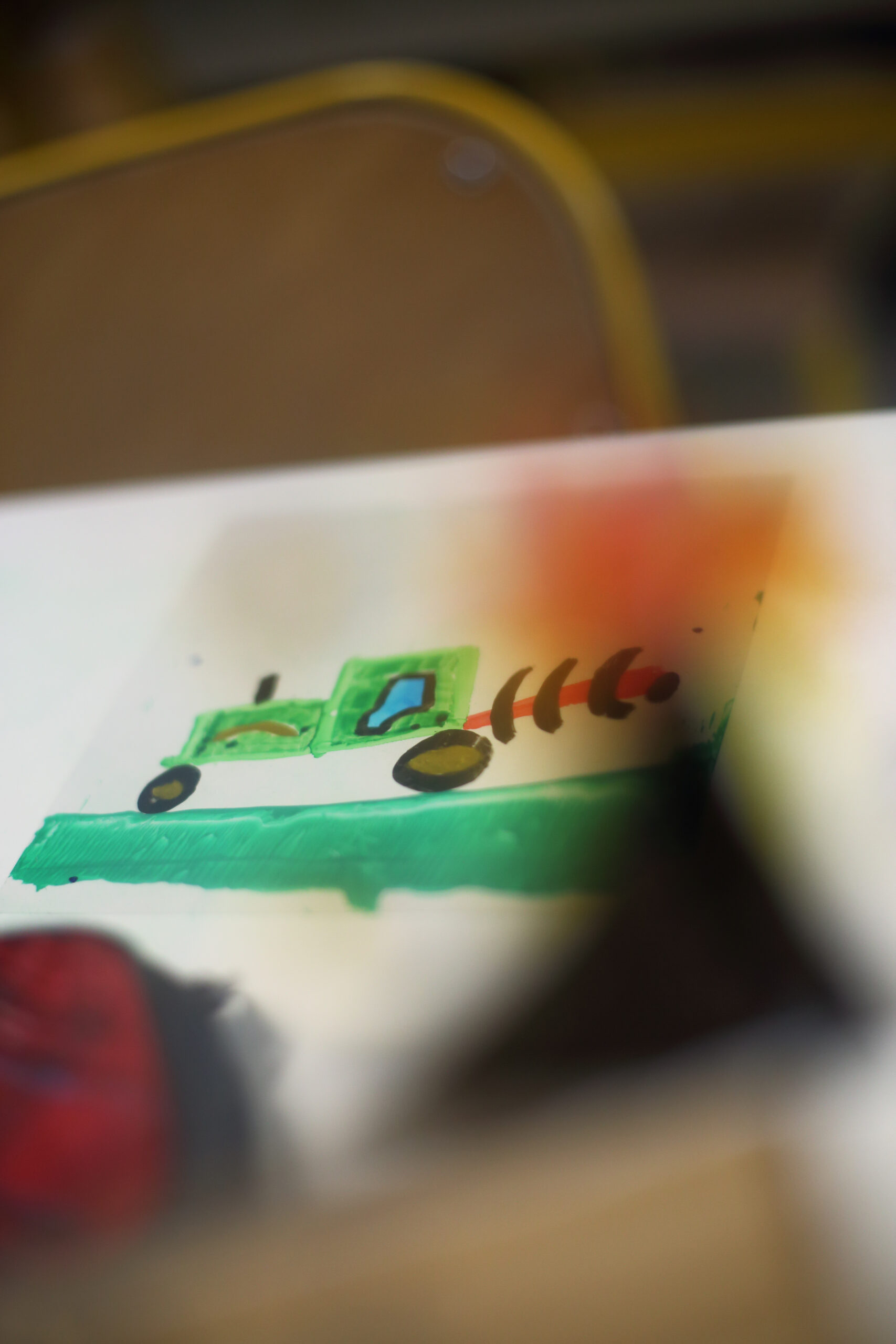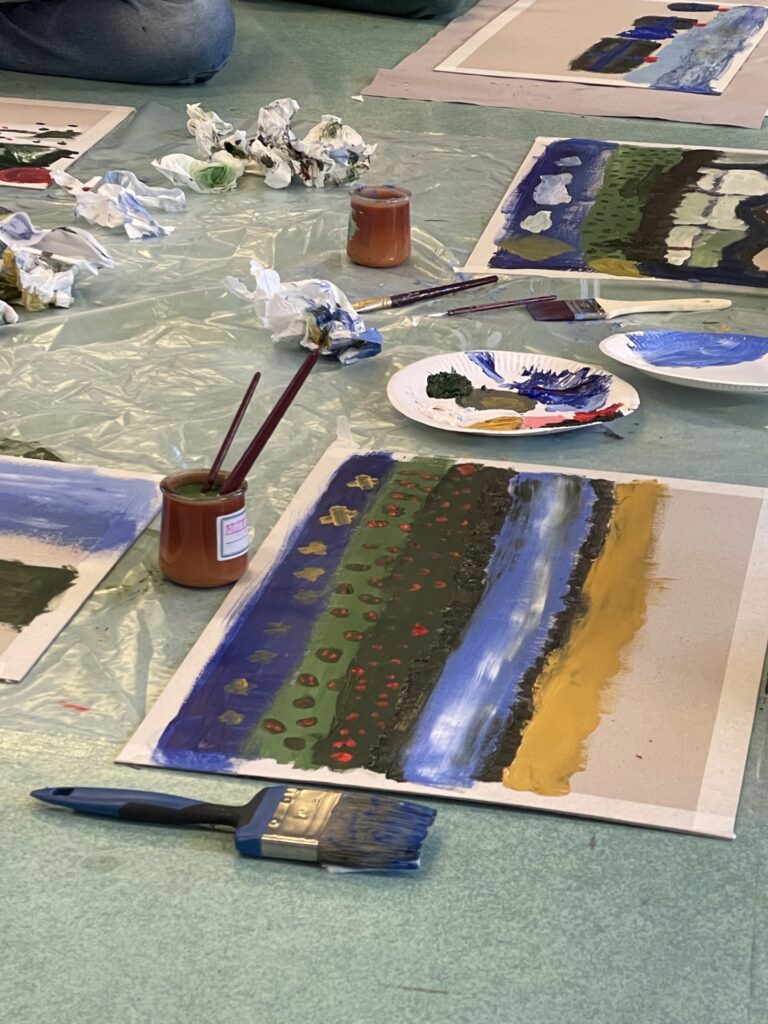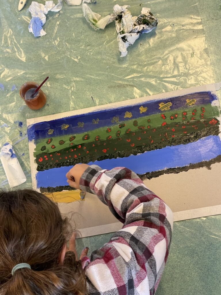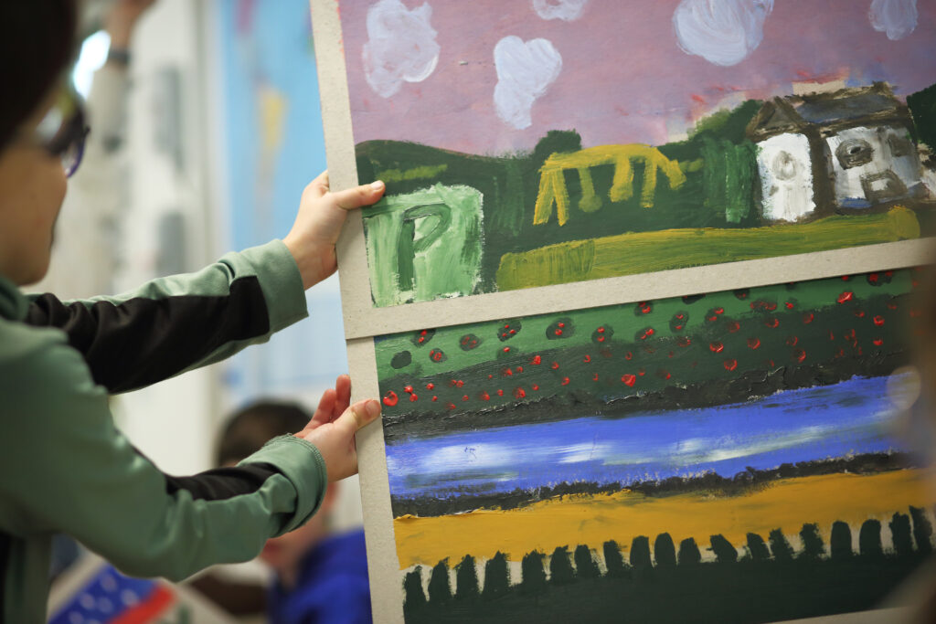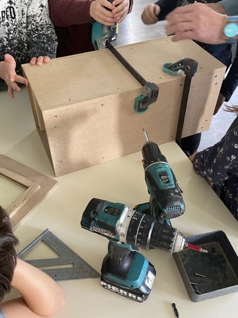 Les ateliers peinture et construction menés auprès des enfants inspirent les artistes dans leur travail sur la scénographie du spectacle. Ensemble, enfants et artistes, expérimentent, se trompent et recommencent. Les enfants de la classe complice sont donc de précieux collaborateurs artistiques !